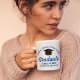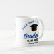 Denna moderna, blå och svarta anpassningsbar, äldre student mugg har högskola eller högskola namn för 2023. Anpassa med ditt graderingsår under handskrivet skript för chic och svart graderingshölje för en studentfest för underbar personlig.