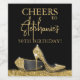 Elegant och Chic Modern Guld och Black Personlig Birthday Vin Anpassningsbar Labels with Faux Glitter Flaska High Heel Stiletto Shoes and custom name calligraphy script cursive with "Cheers" to födelsedagar Gult all age Guld namn!