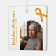 Tillägg Cancerprydnad bidrar till att högtidlighålla den sista dagen av kemoterapi. Utformningen har ett gult färgad som bifogar ett menyfliksområde för cancermedvetenhet. Anpassa med namn, datum och foto. Ändra bakgrunden till färg på designens framsida och baksida till kostym.