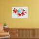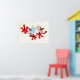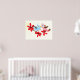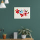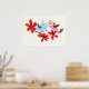 Det poster ett par rödblommor med två söta fåglar rosa och blått på gren med röda blommor.