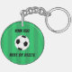 Anpassa den här moderna och enkla fotbollstangentkedjan med temat design som innehåller en vit och svart fotboll på en grönt fält. Anpassa den med ditt namn eller din text genom att klicka på knappen Anpassa.