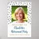 Anpassningsbarnas foto pension party poster med guld och blå konfekti.