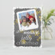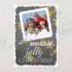 Unikt, klassiskt, trendig, söt och dekorativt Helgdag. Roligten "Ha en holly Jolly-jul", citattext skriven i typografi på svart och grått-färgad bakgrund, med faux guld snöflingor mönster. Med utrymme att anpassa eller anpassa med ett foto som du väljer.