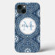 En snyggt konstinspirerad mandala med marin blå bakgrund. Ett modernt telefonfodral för trendig med designer-överstrålning och personlig med monogram och namn. Den här designen är en fantastisk presentidé för dig själv. Den har en modern enkel blå mönster-design, en elegant minimalistisk blåmandala, en snyggt trendig contemporary stil, ett kalligrafiskt typsnitt för snyggt, ett monogrammat första namn, en contemporary som anpassats anpassningsbar, ett brev elegant, rent, ett cirkelformat geometriskt format, med förenklad denim, enkelt blåvitt, ett modernt fodral. mörk
