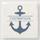 Modern och elegant nautisk anpassningsbar med monogrammad sten underlägg ett kustnära stil med båtankare och tvärsnittstext med strippad monogramstil som kan vara personlig med ett efternamn. Du kan anpassa marin blå design.
