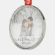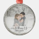 Minneshögtidlighålla den första julen i giftermål med denna vackra moderna keepsaksprydnad. Grått-texten från kol lyder "Vår första jul som Mr & Mrs", med ord "Mr & Mrs" i handskriftsskript i elegant med blommor före och efter. Ersätt exempelbilden med ditt favoritfoto och lägg till efternamnet och året. Ett vitt övertoningsfilter hjälper till att göra så att texten visas.