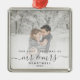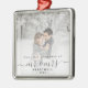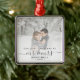 Minneshögtidlighålla den första julen i giftermål med denna vackra moderna keepsaksprydnad. Grått-texten från kol lyder "Vår första jul som Mr & Mrs", med ord "Mr & Mrs" i handskriftsskript i elegant med blommor före och efter. Ersätt exempelbilden med ditt favoritfoto och lägg till efternamnet och året. Ett vitt övertoningsfilter hjälper till att göra så att texten visas.