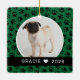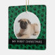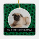 Gratulera till hårigets familjs juldebut med den här vackra personligen som prydnadsföremål! Festiv design har mönster i tass avtryck, ett foto av din hund (eller katt) och modern anpassningsbar "Min första jul", namn och födelseårstext. Grönt, svartvit färg. Fototips: skörd fotot i fyrkantigt format innan det överförs till platsen.