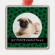 Gratulera till hårigets familjs juldebut med den här vackra personligen som prydnadsföremål! Festiv design har en mönster i tass avtryck, ett foto av din hund (eller katt) och modern anpassningsbar "Min första jul"-text. Grönt, svartvit färg. Fototips: skörd fotot i fyrkantigt format innan det överförs till platsen.