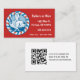 affärskortet i snyggt har ett rött, vitt och blått kort från stil med ett modernt utseende. Anpassa med information om butiker på fram- och baksidan, inklusive en QR-kod för anpassningsbar som håller kontakten med klienter.