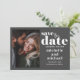 Lägg märke till din stora dag med det här spara-till-datum-kortet i bröllop som innehåller ditt personliga foto och en ren, modern typografisk layout. Designat i grått och vitt, fångar det ett enkelt, minimalistiskt utseende medan det förblir tidlöst och klassiskt. Perfekt för att visa bruden och trimningen, blandar den här designen elegans med funktioner. Det är ett val för snyggten för par som kärlek är ett minimum av estetiskt och vill att deras spara-till-datum ska känna både chic och minnesvärd.