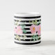 Njut av din favoritdryck i den här vackra muggen med rosa blommor i vattenfärg och svart och vitt rand.