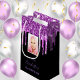 En presentväska för en gigantisk och glamorös 21:a (eller någon ålder) födelsedag. En svart bakgrund med lila och rosa faux guld glitter droppar, färgdroppstift. Texten: namn är skriven med ett modernt skript för lila hand, skrivet stil. Tempera för ett datum och ålder 21 år. Anpassa och lägg till ett eget foto av födelsedagsflickan. Kan användas både för presentemballering eller som partiaffisch.