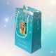 En presentpåse för en girig och glamorös 16, 16:e (eller någon ålder) födelsedag. En teal, blå övertoningsbakgrund med faux glitter-droppar, färgdroppsutseende. Texten: namn är skrivet med ett modernt, vitt, skript till stil. Tempera för ett datum och 16 år. Anpassa och lägg till ett eget foto av födelsedagsflickan. Kan användas både för presentemballering eller som partiaffisch.