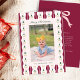 Det här charmerande anpassadet julfotokort har en fin burgundisk och vit strimlad bakgrund och intrikata prydnadsföremål och gräns. Visa din favoritfamiljs foto som tillför elegans och värme till dina julhälsningar.