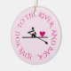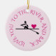 En underbar rosa hängande ornament med ett roterande tema. På ena sidan är ett piktogram av en romer som transporterar ett hjärta, med redigerbar text i djup rosa: "KÄRLEK TO THE RIVER AND BACK". Ladda upp ditt favoritfoto på andra sidan. För Alla hjärtans dag, för jul, för alla romantiska tillfälle.