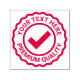 Anpassningsbarnas kvalitetskontroll - markera självfärgande frimärke. Anpassa med anpassningsbar till 100 % garantitext eller namn för företag. Cirkel frimärke i godkännandekonstruktionen med fästkryssen. Underbar för officiell, officiella utbildningsbevis, intyg, märkre och annat. Färg och teckensnitt kan ändras. Rött exempel.
