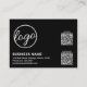 Svart visitkort för anpassningsbar med en minimalistisk utformning med logotyp- och rabatterbjudanden. På baksidan finns kontaktinformation, logotyp och två valfria QR-koder. Du kan ta bort QR-koderna i verktyg för designredigering. En grundläggande och tydlig design som fortfarande visas som professionell. Det här enkla rabattkortet är underbart för alla typer av företag, stora som små.