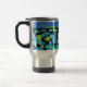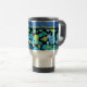 En Resemugg för chic att anpassa sig med ett kvickt Blue Måne mönster i Aqua, Turcos, Emerald Grönt, Neon Grönt och Dazzling Blue mot svart bakgrund. En del av Posh & Painterly Blue Måne-insamlingen.