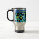 En Resemugg för chic att anpassa sig med ett kvickt Blue Måne mönster i Aqua, Turcos, Emerald Grönt, Neon Grönt och Dazzling Blue mot svart bakgrund. En del av Posh & Painterly Blue Måne-insamlingen.