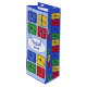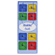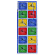Texten (i blått) längst fram i denna presentpåse är redigerbar, så den skulle vara lika lämplig för en "Grattis på födelsedagen"-gåva eller andra särskilda tilldragelser. Utformningen har färgstarka ikoner på säckens framsida, baksida och sidor med silhuetten från en enda stav.