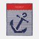 Vackra ankare för frakt av contemporary, på ett klassiskt och chic marint blått och vitt rand mönster. Sätt igång med vit sjörep, med utrymme att anpassa sig eller anpassa sig med namn, initialer eller monogram efter eget val, eller någon typ av nautiskt uttryck som "Frakt Ahoy", "Sail Away", "Anchors Aweigh" eller "Bon Voyage". Skapat för kapten, älskare på semester och sommar. För dem som i kärlek dekorerar sin masterbostad eller barnsovrum, daghem, boende- eller familjerum, kvinna- eller mangrottor, college dorm, condo, studio eller lägenhet, strandhus, land stuga, loghytter, RV eller kamper, båt eller yacht, sjö eller flodsemester eller bil.