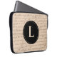 Detta vackra laptop sleeve har en anpassningsbar monogram som börjar i en svart cirkel på en bakgrund av ett antika handskrivet brev i vacker kalligrafi. En perfekt-gåva till en författare eller läsare.