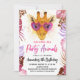 Få redot att gå vild! Denna pulserande och lekande födelsedagsinbjudan är perfekt för ditt lilla party djur. Med en roligt Giraffe-bakgrund, fet nyon-text och djungel party-vibes, är det det perfekta sättet för gäster från inbjudan till en vild firande. Underbar för pojkar eller flickor som kärlek, djungelteman eller slips färg. Anpassa med dina egna uppgifter om party för att göra den verkligt unik!