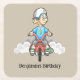 En liten pojke på en röd trehjuling ringer alla sina vänner till hans födelsedagsfest.