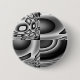 Den här knappen har ett svart och vitt mönster som kan likna många former och former, men hela bilden ser ut som ett ondskefullt ansikte med mörk som stirrar på öga och en bred flin.