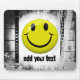 Lägg enkelt till din text eller ta bort exempeltexten till den här söta, klassiska ansikte-knappen i lycklig i ursprunglig, traditionell gult med fet svart färg. Bakgrund är en grumlig filmremsa gräns i svartvitt som kompletterar den ursprungliga designen. Du kan t.o.m. ta bort gulten ansikte och placera ett foto där! Sätt på dig en lycklig ansikte med den här ljusa muspekaren! En underbarare påminnelse om att behållan leker, även om du har de där drömda datorproblemen! En present från roligt lycklig!