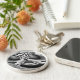 Den här nyckelkedjan har ett svart och vitt mönster som kan likna många former och former, men hela bilden ser ut som ett ondskefullt ansikte med mörk som stirrar på öga och en bred flin.