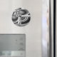 Den här magneten har ett svart och vitt mönster som kan likna många former och former, men hela bilden ser ut som ett ondskefullt ansikte med mörk som stirrar på öga och en bred flin.