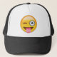 Ansikte med klibbat ut spontar och blinka ögat truckerkeps