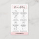 Se till att dina kunder vet hur de ska ta hand om huden efter behandling med mineralskal eller kemiskt skal från ansikte med ett affärskort med personlig ansiktskal efter behandling. Detta femininin vårdeskort för exfoliationsbehandling innehåller vårdikoner för varje steg, ett modernt typsnitt och utrymme för dina affärsdetaljer. Detta vårdkort för rosa och vita estetiker är perfekten som tillägg till ditt salongpapper.