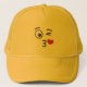 En kyssande känsla. Den ena öga är öppen, den andra vinkar. Ett hjärta lämnar kyssmunnen.