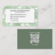 Den här designen har en enkel visitkortsmall med ett modernt minimalistiskt utseende för professionellen, minimala medieikoner för social, ett trendig med vanlig skannerbar QR-kod, en chic digital kontakt, en ikon för en mobil e-postcell webbplats, en enkel svart och vit, elegant minimalistisk snyggt, foto- eller grafikmall, contemporary rent modern elegant, med tropisk stil grönt löv.