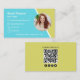 Den här designen har en koppling till oss med QR-kontokortmallen och lägger till ett eget logotyp-foto för företagsmallen professionell, med social-medieikoner Facebook Instagram-ikoner och en enkel minimalistisk contemporary stil, med online webbplats webben-URL, en modern enkel typografisk design, en adress trendig grundläggande ren, snyggt för butiken för småföretagsägare, med en färgstark blå teal och underbar grönt