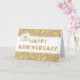 Det här är ett guld-foleffekttkort med en neutralt i som tonas på medarbetaren vid 4-årsdagen, med en delikataktigt kontrasterande utformning av löv i bakgrunden. Konstruktionen har den centralt placerade texten "LYCKLIG ANNIVERSARY" i ett teckensnitt med lagrade effekter med guld-folieeffekt diagonalt linjer på varannan brev. Antalet år skrivs på en benvit anteckning och en fyrkantig, formaterad rektangel upp till och till lämnat om centraltexten. Observera att 3D- och guld-folieeffekterna simuleras digitalt i teckningen. Ingen 3D-inslag eller guld-folie kommer att användas vid skapar av detta kort. Det tryckta kortet är helt plant. Design av Natalie Kinnear