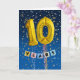Den stora versionen av detta kort, 8,5 x 11 tum, finns här: https://www.zazzle.com/employee_10th_anniversary_gold_balloon_number_card-256464956892466218 Detta är en roligt medarbetares 10-årskort med nummer 10 som visas i guld färgad-ballonger. Varje ballong har ett flytande band fäst. Ballonerna ställs mot en blå bakgrund som sprinkleras med fallande konfetti. Det finns också en del konetti brev, med övertäckning av guld-folieeffekten, där brev är GRATTISARNA i ord. Under ballongen buntas brev Y E A R S. OBSERVERA: guld-folieeffekten simuleras digitalt och ingen guld-folie kommer att användas i skapar på detta kort. Natalie Kinnear Cards