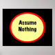 Detta poster i en röd, gult och svart cirkel och råder oss att anta ingenting. Ord att leva vid..spela det säkert.
