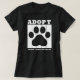 Den här moderna, söta älskare-t-shirt med en tönt som säger "ADOPT" och som har din rädding eller ditt företag namn skulle vara perfekt för ditt adoptionsevenemang. Ge ett till alla som donerar eller adopterar ett djur. Det kommer att få ditt namn och ditt meddelande där ute. En vinnare!