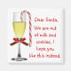 Roligt lite julmagnet, med en anteckning till tomten. Ett festivt dekorerat vin-glas, med rött båge på stjälken och ett candy cane hängande på kant dekorerar denna roligt helgdag-magnet. Ett sött meddelande till tomten, kära Santa, vi är ute ur mjölk och kakor, jag hoppas att du gillar det här istället. Anpassa om du vill att texten ska säga något annat.