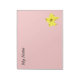På konstruktionen visas den gula blommarna av en pumpkinblomma på ljus rosa bakgrund, med ord "Mina anteckningar" ovanpå plattan. Du kan enkelt ändra bakgrunden till färg och lägga till ditt eget ord genom att klicka på knappen "anpassa".