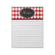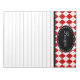 Klassiskt rött och vitt argument dekorerar det här anteckningsblocket. Designen kommer från originalteckningen.