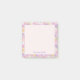 Det här livfulla fyrkantiga anteckningsblocket har en rolig, retroblommig design i nyanser av rosa, lila, gul och vit. Personalisera med ditt namn för att göra det unikt för dig och lägg till en touch av personlig charm på ditt skrivbord eller arbetsplats.