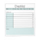 Med vårt eleganta Anteckningsblock med checklistan Varje dag kan du ta farväl av glömskan och hejen till produktiviteten! Med det här praktiska biet i kontorsutrustningen kan du enkelt och effektivt hantera din lista. Med den rena layouten kan du öppna uppgifter, checka ut slutförda uppgifter och till och med skriva i anteckningar eller idéer. Det är inte bara ett anteckningsblock, det är din personliga, bärbara uppgiftshanterare. Starta din resa mot en organiserad framgång i dag med vårt Anteckningsblock med checklista för varje dag!