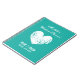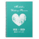 Vintage bröllopplanneranteckningsbok eller journal med lantlig hjärtadesign. Den gulliga organisatören för förlovat kopplar ihop/den framtida bruden och ansar att planera deras giftermålparty. Eleganten skrivar typografi med ridit ut kärleksymbol. Nätt aqua-/turkosblåttbakgrund eller skräddarsy. Perfekt för landchic eller themed bröllop för strand. Gör din egna behändiga lite bok för för att göra listar, budgeterar, kostar, noterar och planerar.