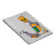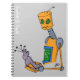 En anteckningsbok med ett orange robotinnehav en främling, vid Scarlett & tioarmad bläckfisk.