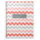 Spiral bröllopsfixarenjournal med orange rosor för elegant korall, kolgrå färg och det retro och tillfälliga för sparresicksackrandar mönster för vit, med anpassadetext som tillfogar ditt egna meddelande. Perfekten för att gifta sig för uppläggning planerar och specificerar, en underbar gåva för att bruden ska vara.